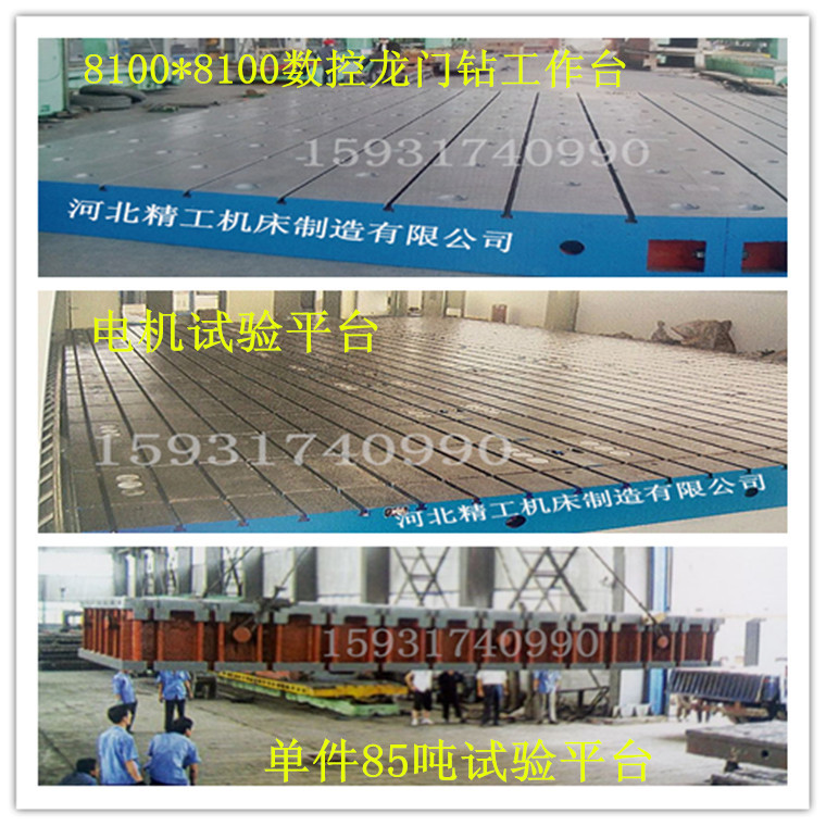 我公司根據客戶不同需求,生產了不同用途的鑄鐵平臺。有用于工件焊接檢測用的焊接平板、鉚焊平板、三坐標平臺;有用于零件劃線研磨加工用的劃線平板、研磨平板、刮研平板;有用于設備安裝調配用的裝配平板、基礎平板、T型槽平板、鉗工平板、火工平板;有用于檢驗工作精密測量基準的檢驗平板、圓形平板、試驗平板、電機試驗平臺;有用于機床加工用的落地鏜床工作臺、落地銑床工作臺、水槽工作臺等等。